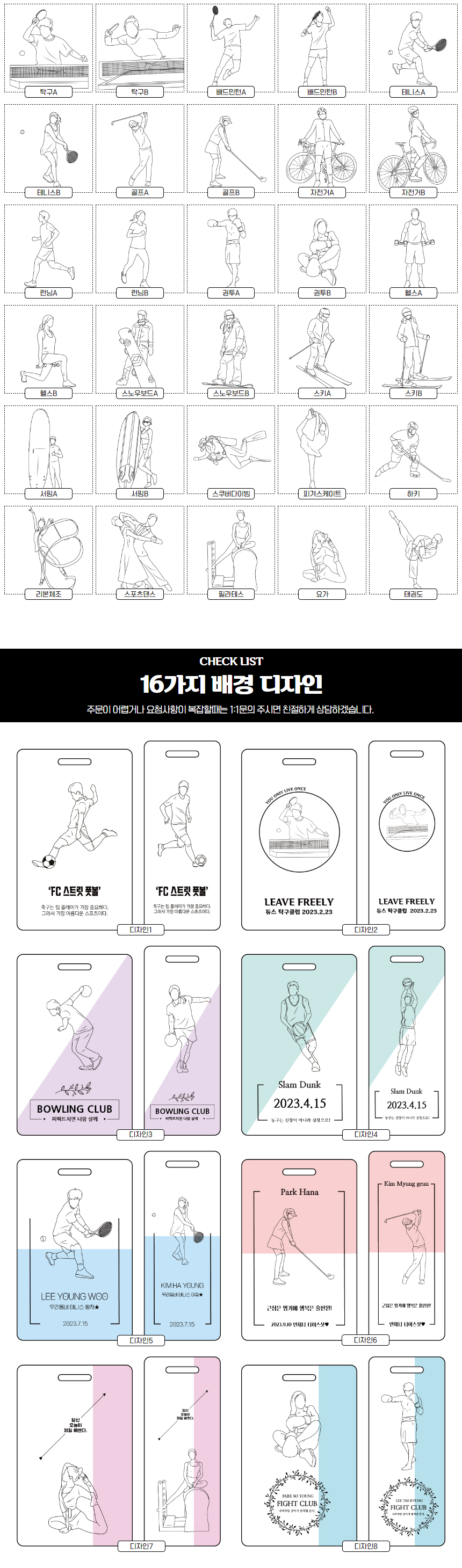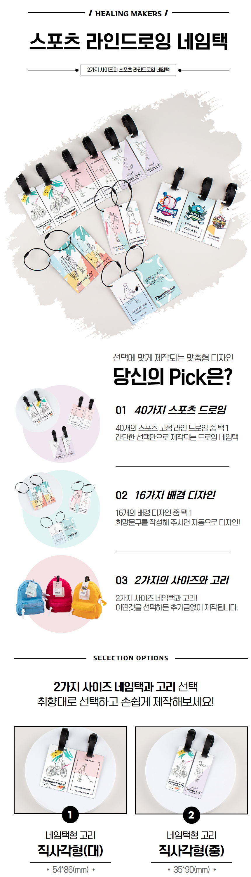 스포츠 라인드로잉 가방이름표 네임택