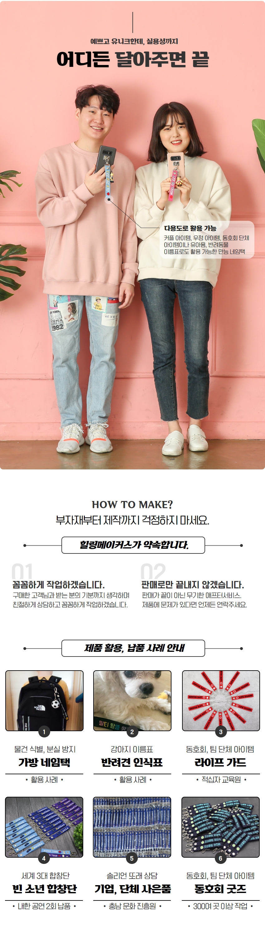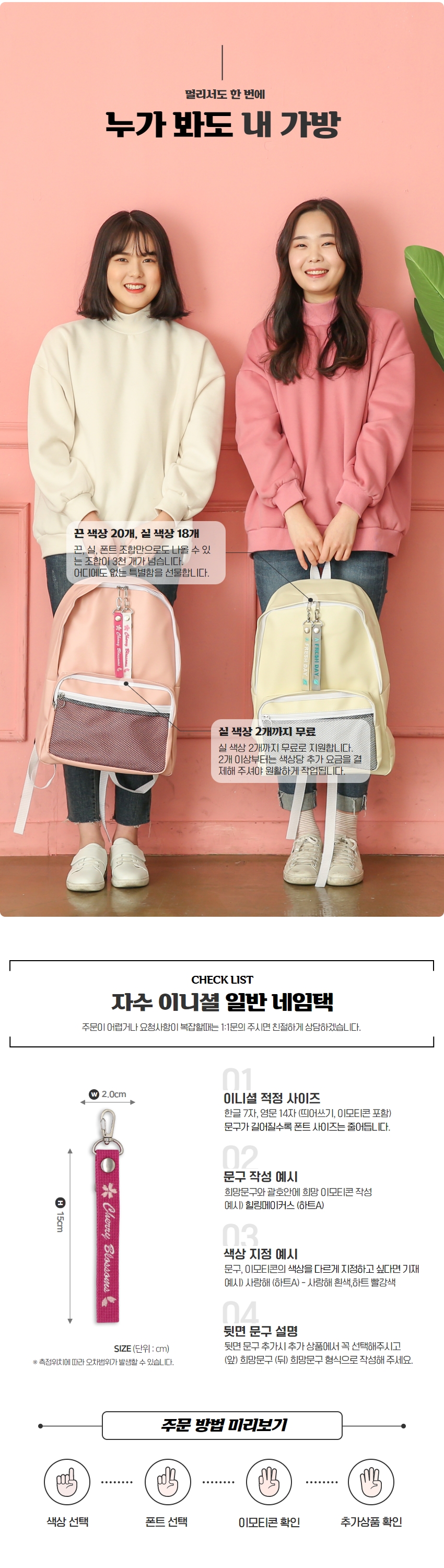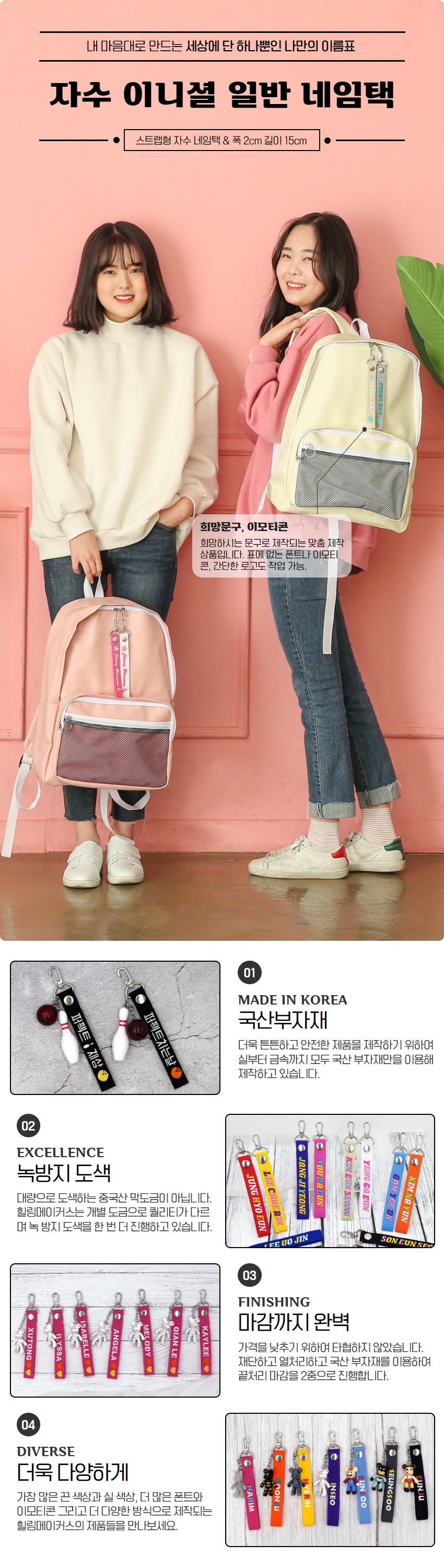 자수네임택 어린이집 유치원 가방 이름표 스트랩 네임택