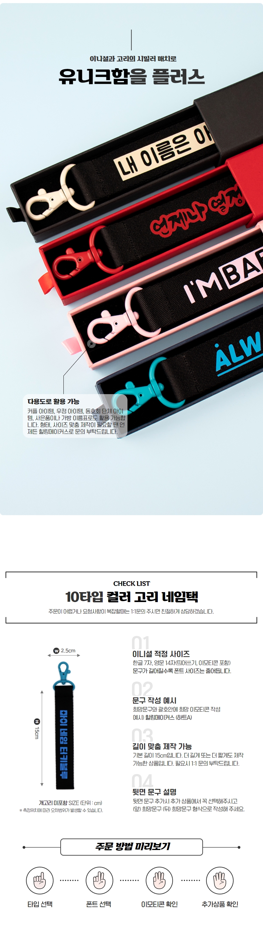 컬러 고리 네임택 이름택 가방 이름표 제작