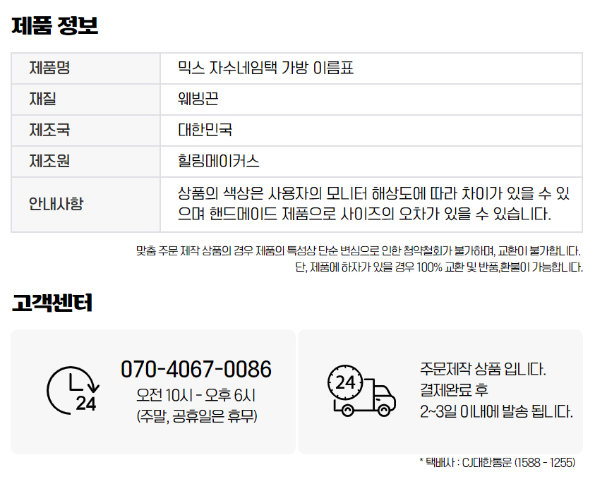 해당 상품은 고객의 요청사항에 맞춰 제작에 들어가는 맞춤 제작 상품으로 반품/교환이 불가하며, 판매자의 실수로 인하여 제작에 오류가 있을 경우 100% 반품/교환이 가능합니다.